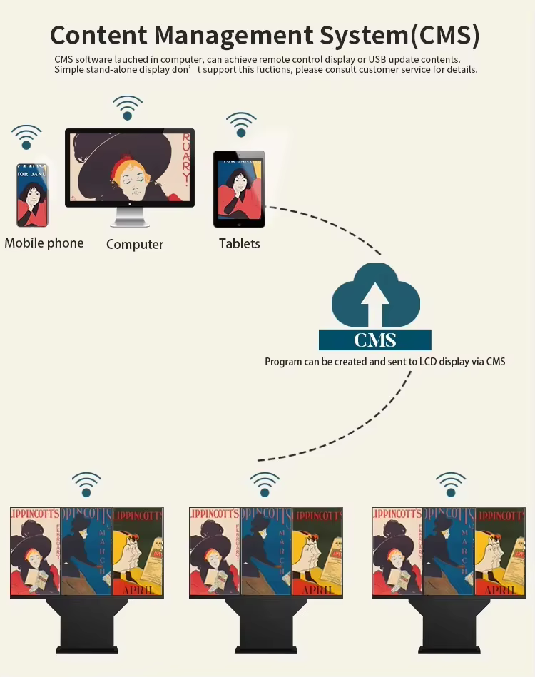 سڑک پر پیدل چلنے والوں اور گاڑیوں کے لئے ، 75 انچ بڑے سائز کے 4K ایڈورٹائزنگ پروموشن اور انفارمیشن ڈسپلے تجویز کردہ۔ ایک ہی وقت میں روزانہ نقشہ اور معلومات کا استفسار فراہم کرسکتا ہے